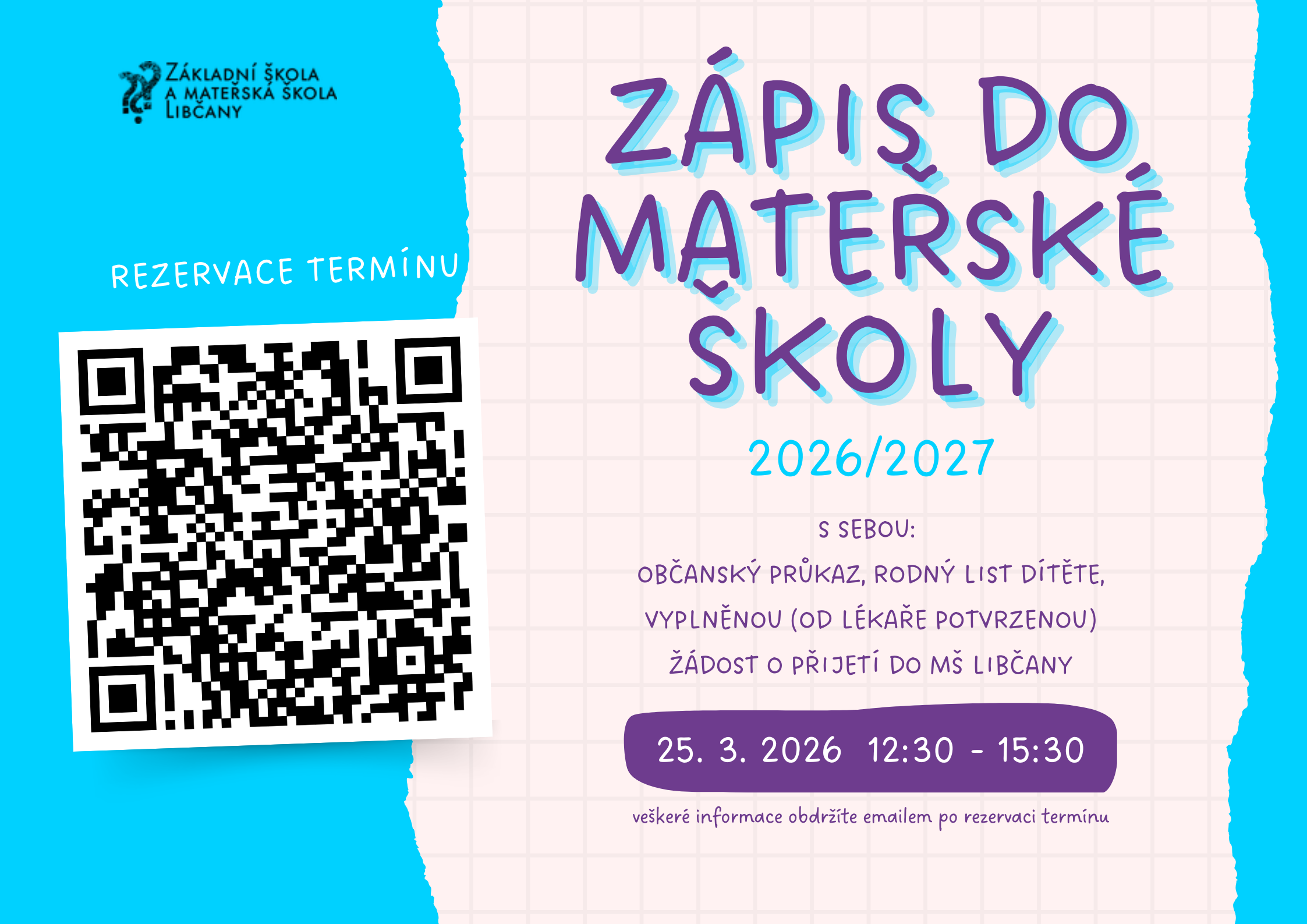 Pro rezervaci termínu zápisu můžete využít QR kód na přiloženém plakátu nebo pře...