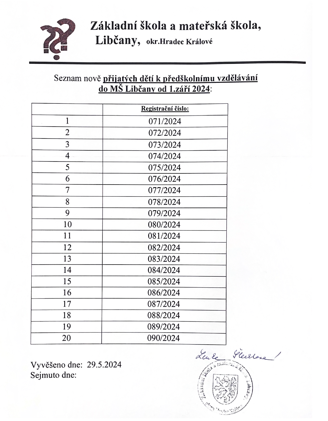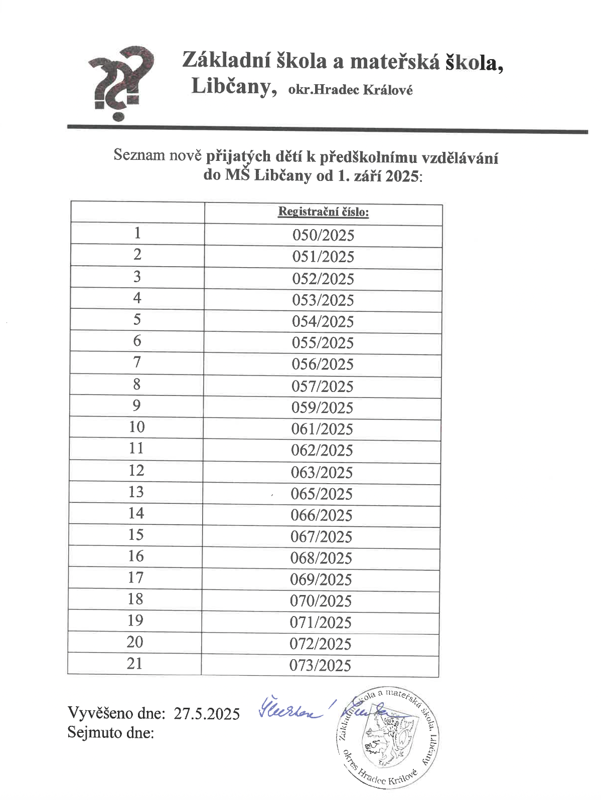 Kritéria pro přijetí do MŠ pro školní rok 2025/2026: <a href="https://zslibca...