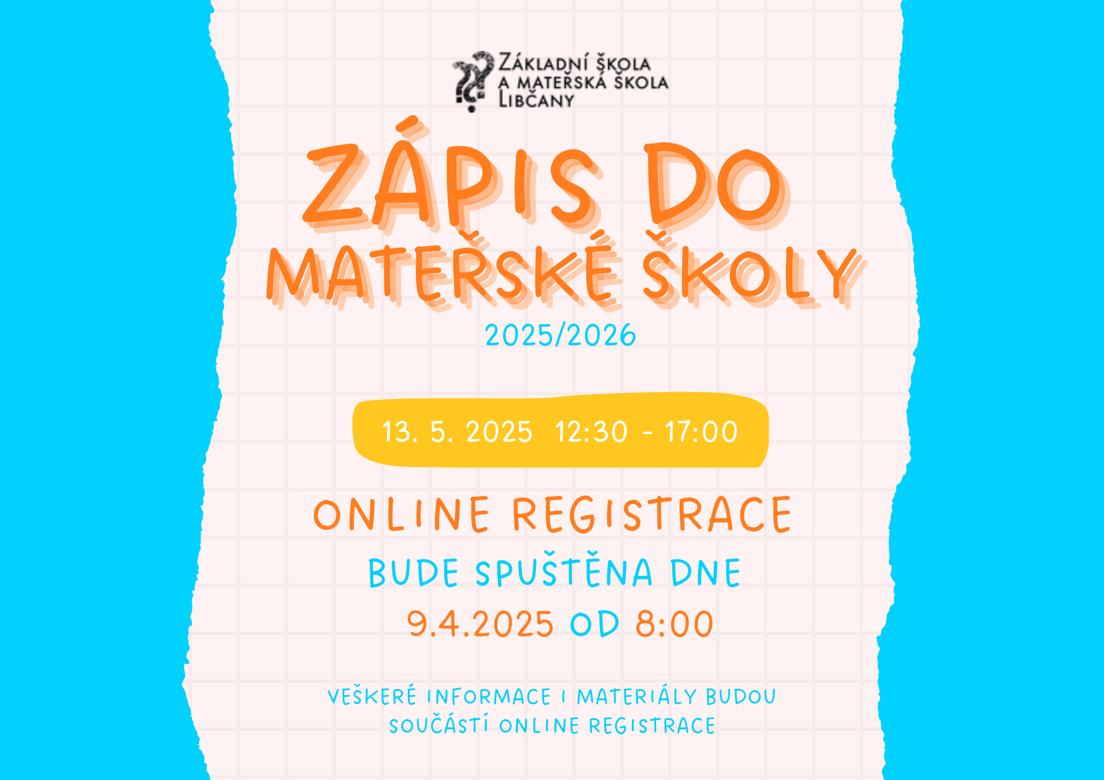 ZÁPIS DO MŠ SE KONÁ 2.5.2024 OD 12.30 DO 15.30 HODIN VEZMĚTE S SEBOU: Vyp...